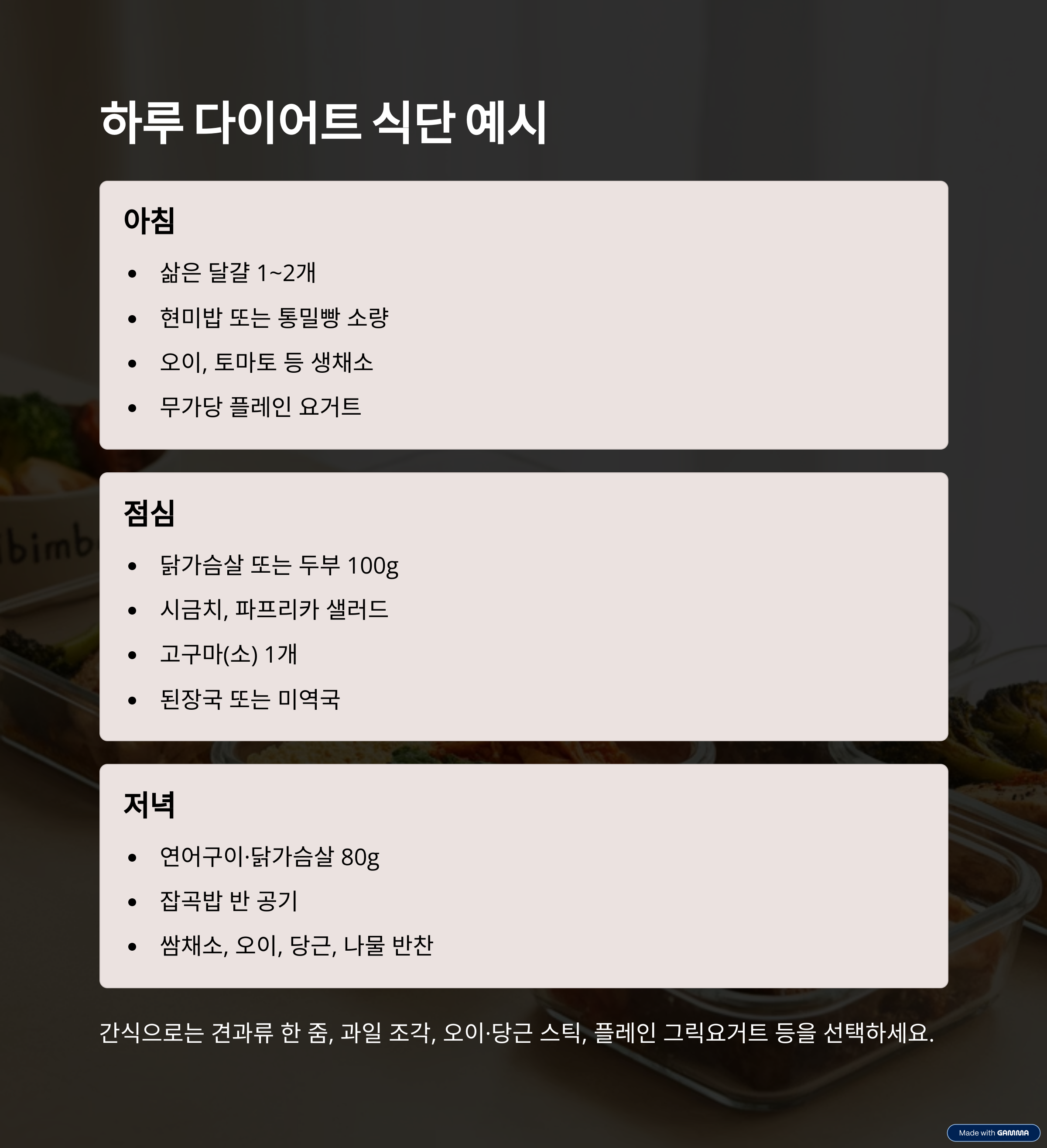 다이어트 식단의 성공은 지나친 제한이 아니라, 나에게 맞는 건강한 습관을 차근차근 만들어 가는 데에서 시작됩니다.